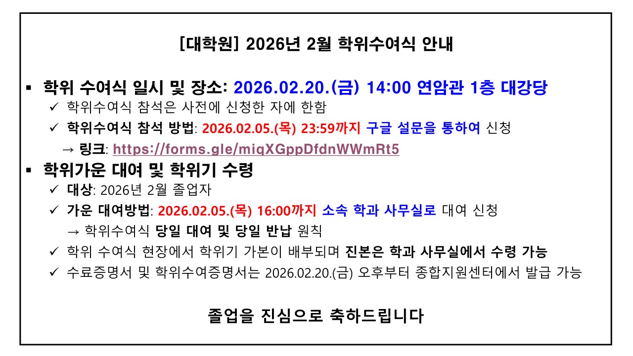 [공지] 2025학년도 전기(2026년 2월) 학위수여식 안내