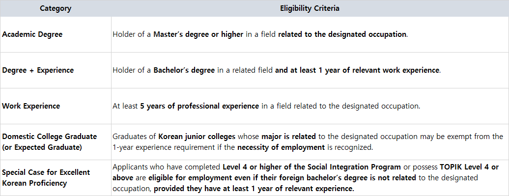 (For Professional Occupations – E-7-1 Visa, 11 Designated Categories)
