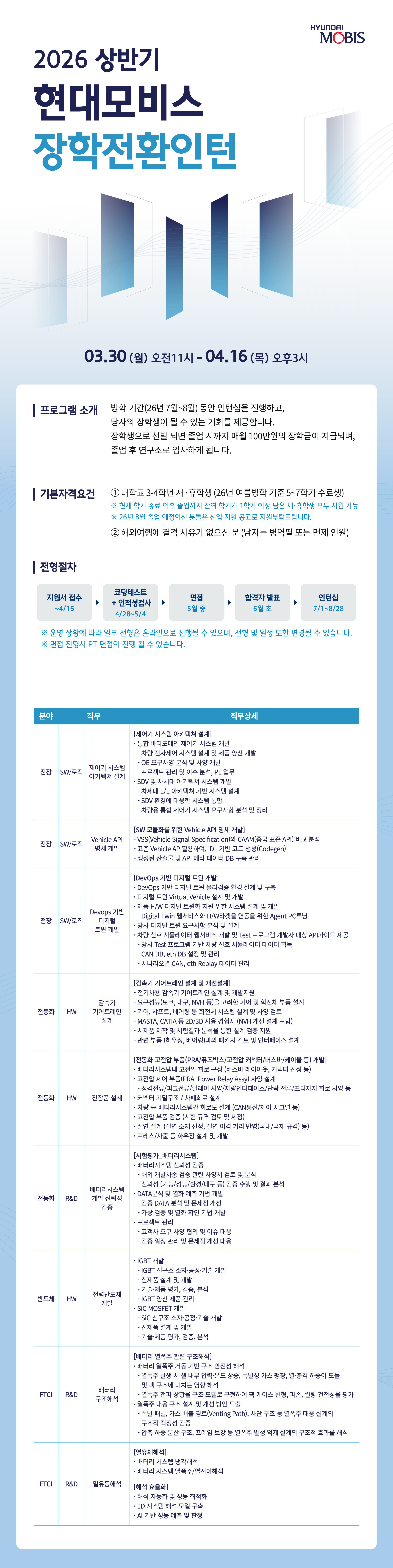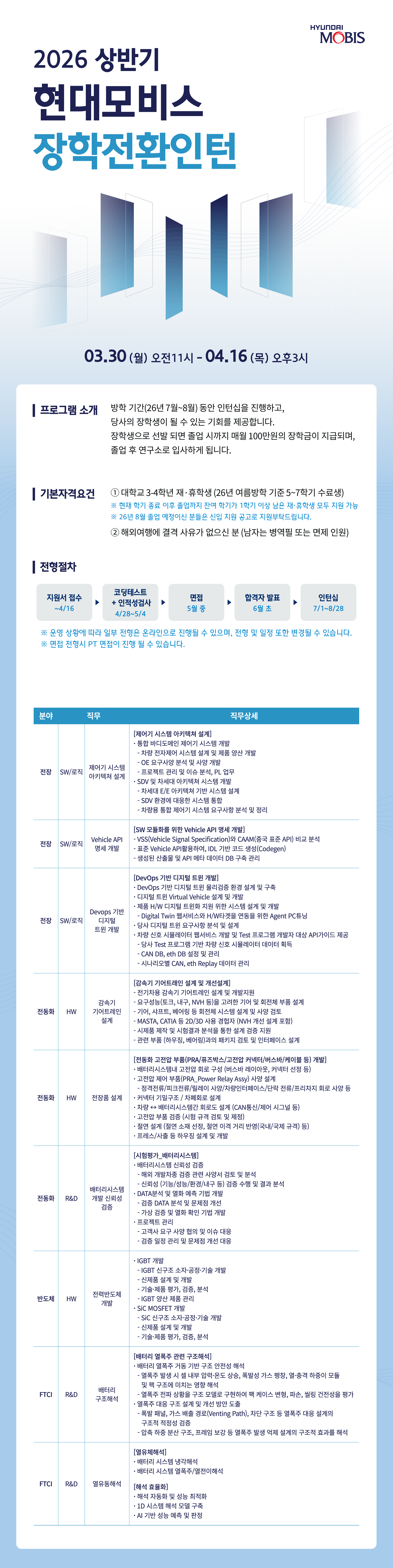 [현대모비스] 26년 상반기 장학전환인턴 모집 (~4/16(목) 15:00)