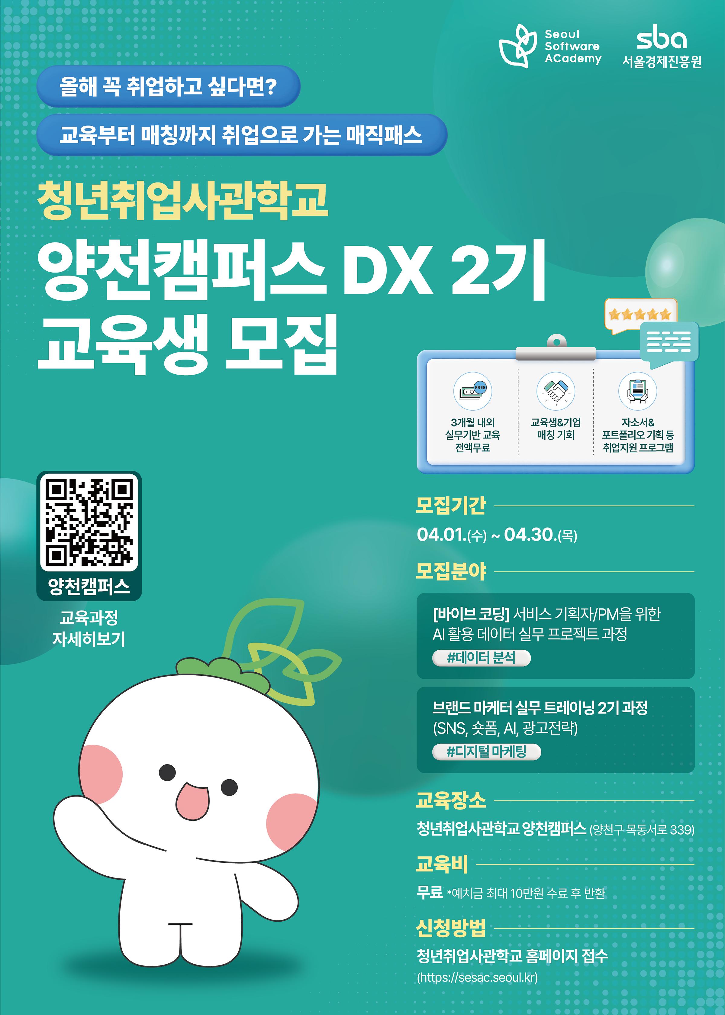 [청년취업사관학교 양천캠퍼스 DX 2기 교육생 모집]