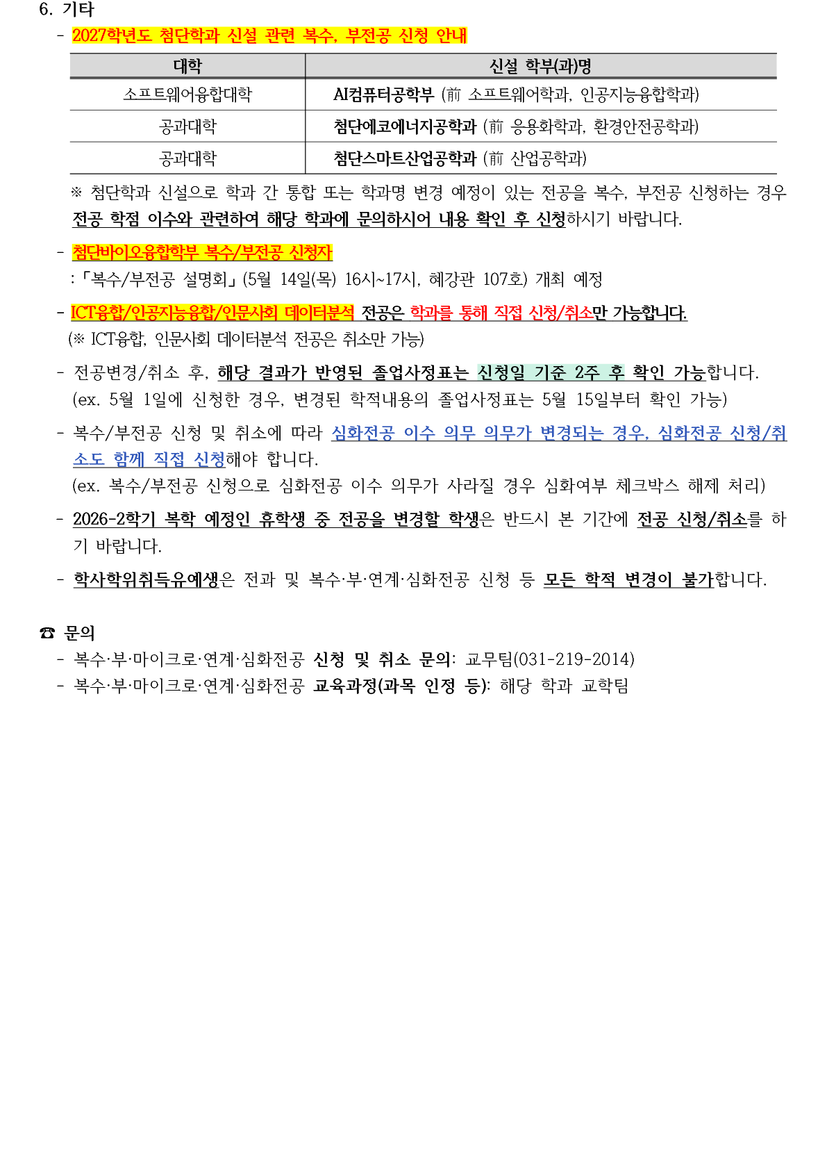 * 각 전공별 (복수/부/마이크로/연계전공) 안내사항: 클릭